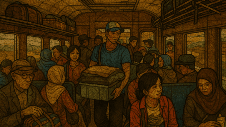 Begitulah cerita si Bapak tentang kehidupan kereta api, kondektur, pedagang asongan, dan para penumpangnya pada masa sebelum Pak Jonan mereformasi perkeretaapian.