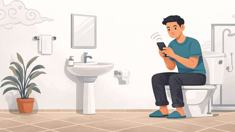 Kadang-kadang, ada orang yang membutuhkan waktu lama saat buang air. Ia harus menunggu beberapa menit hingga kotoran di perut mau keluar. Di sela menunggu itu, alangkah lebih nyaman jika sambil bermain HP. HP membuat suasana lebih rileks sehingga kotoran bisa keluar dengan tenang tanpa paksaan. Ketika ada HP, konsentrasi tidak sepenuhnya tertuju pada perut yang sedang berusaha mendorong isinya keluar.